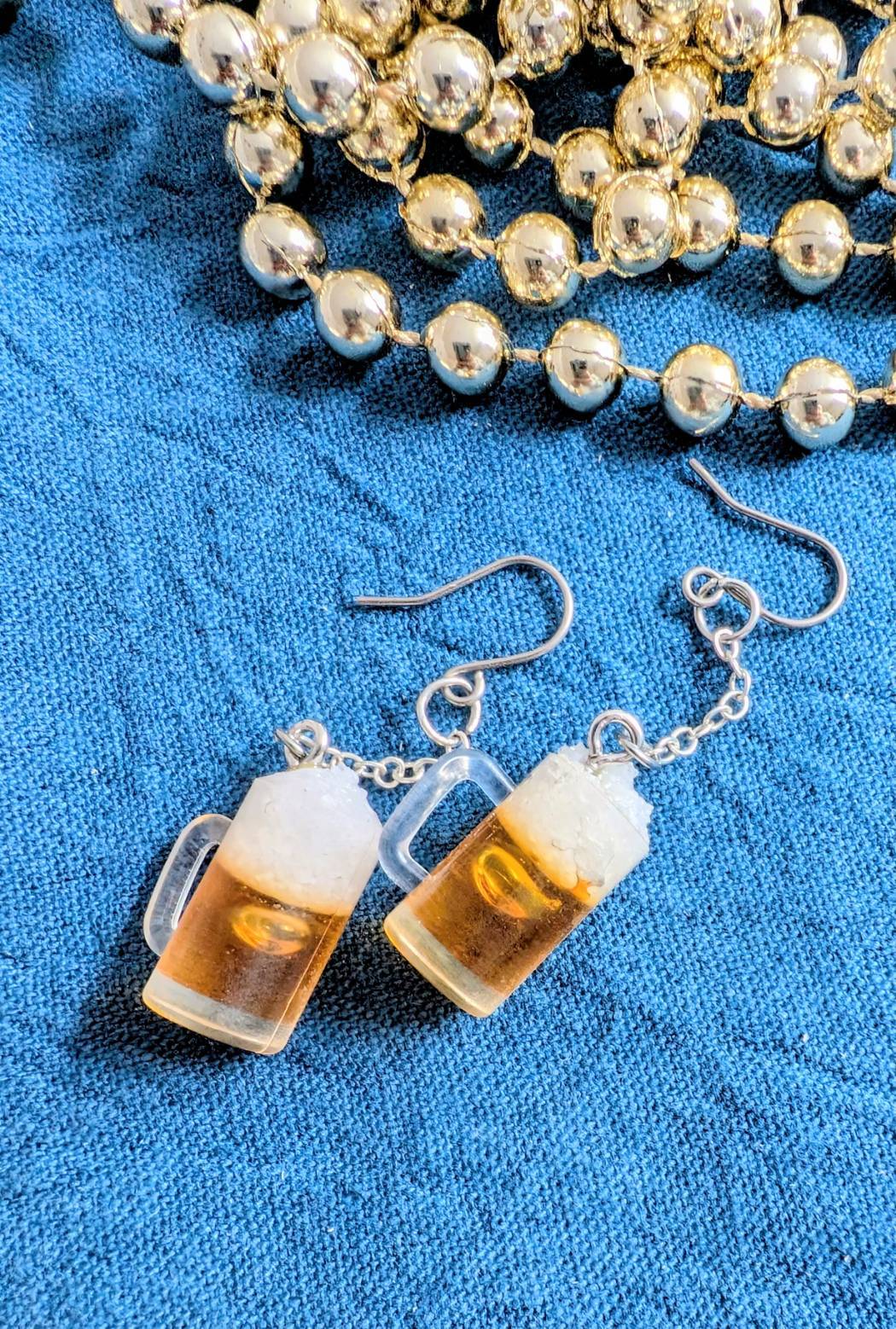 ビールをイメージしたピアスを作ってみました。